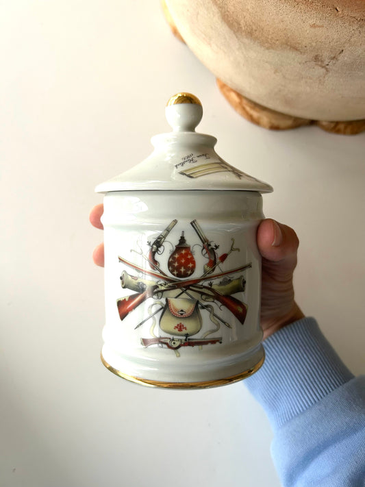Pot décoratif en porcelaine de Limoges – Motifs armes anciennes – Vintage 1960-1980