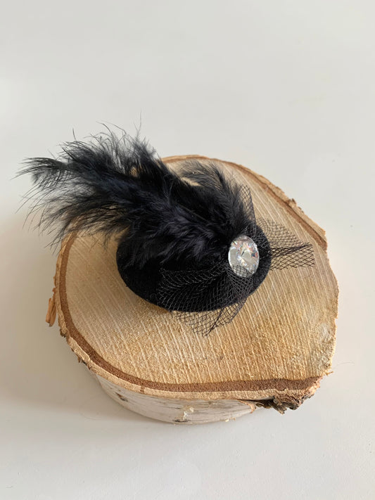 Pince à cheveux vintage chapeau noir et plume La friperie vintage