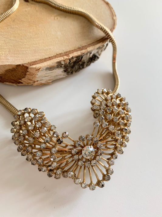 Collier vintage métal doré et strass La friperie vintage