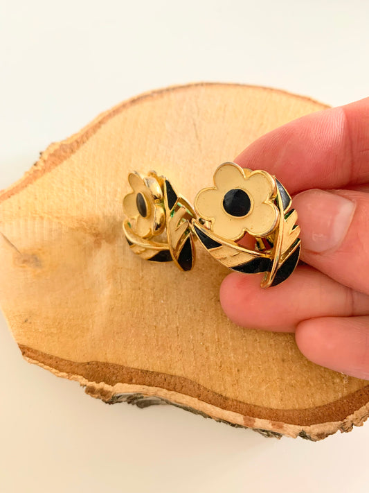 Clips vintage fleur noire et blanche La friperie vintage