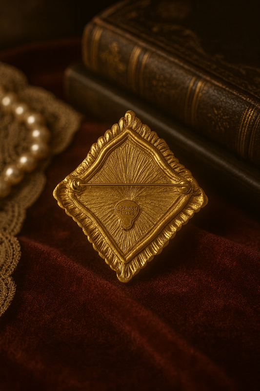 Broche vintage dorée & pierre verte – Scherrer Paris