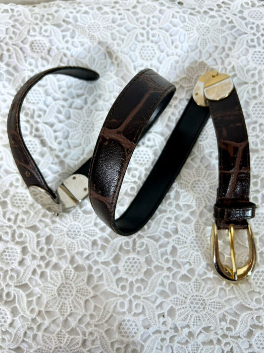 Ceinture vintage cuir marron à chaine métal doré
