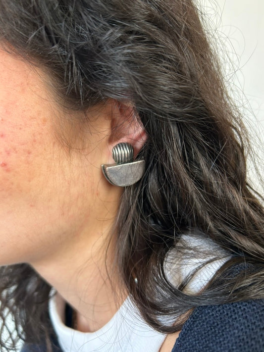 Boucles d'oreille clips vintage argenté métal abstrait