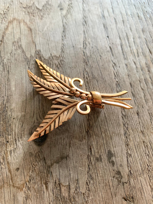 Broche vintage bouquet feuillage poinçonnée métal doré
