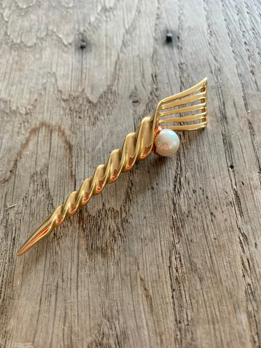 Broche vintage torsade métal doré ornée de perle nacrée