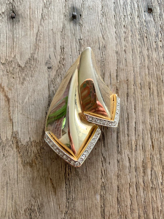 Broche vintage forme abstraite métal doré orné de strass