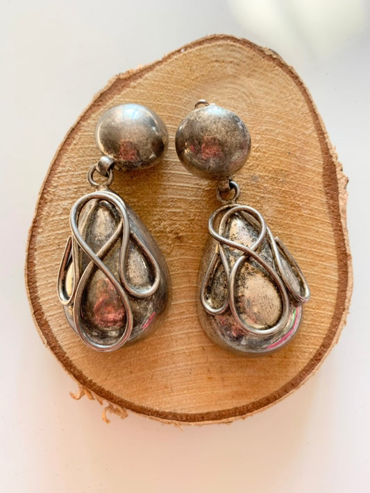 Boucles d'oreilles clips vintage pendantes goutte argenté