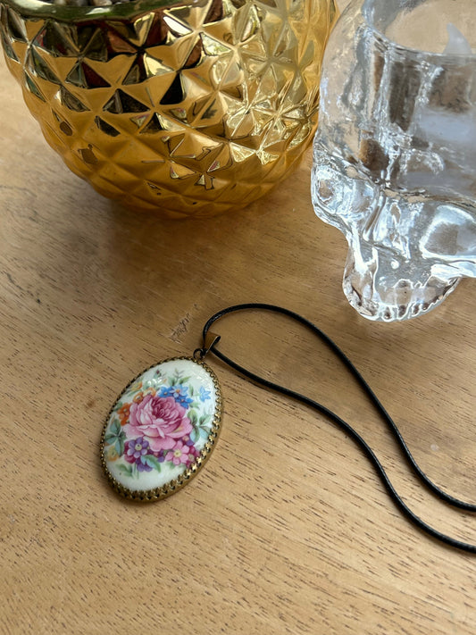 Pendentif ancien Limoges – Porcelaine peinte – Friperie vintage