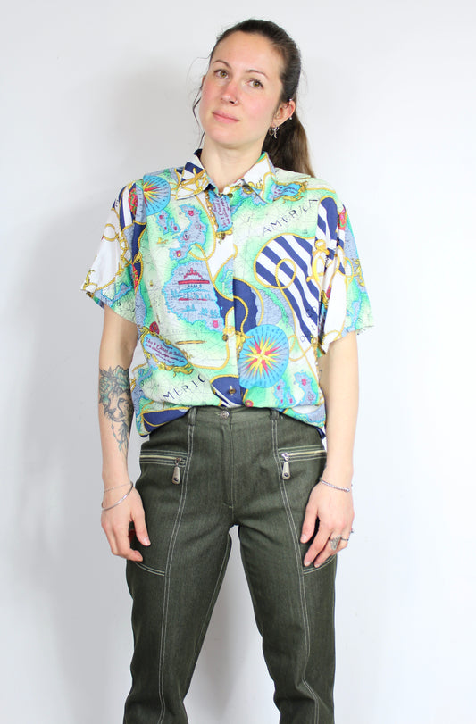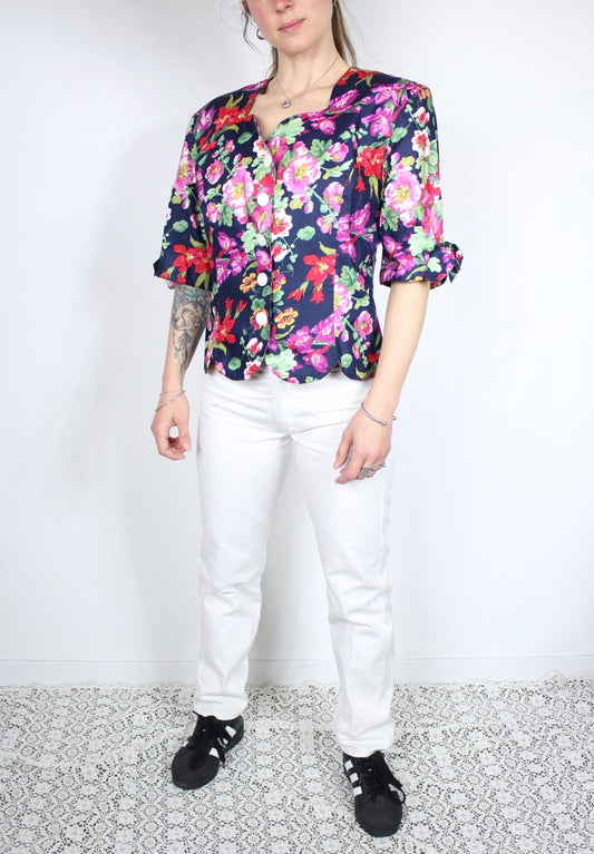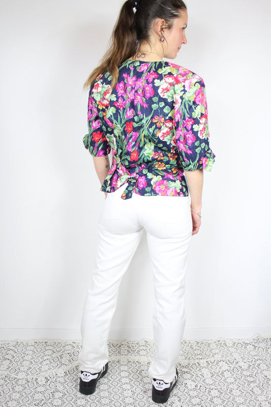 Chemisier vintage motifs fleurs Palais Royal manches 3/4