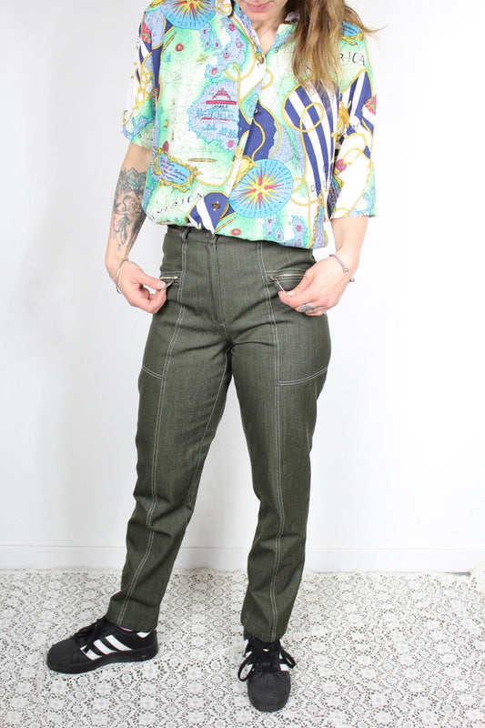 Pantalon kaki vintage taille haute toile Rosa Rosam