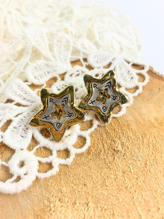 Boucles d'oreilles clips vintage étoile métal argent et or