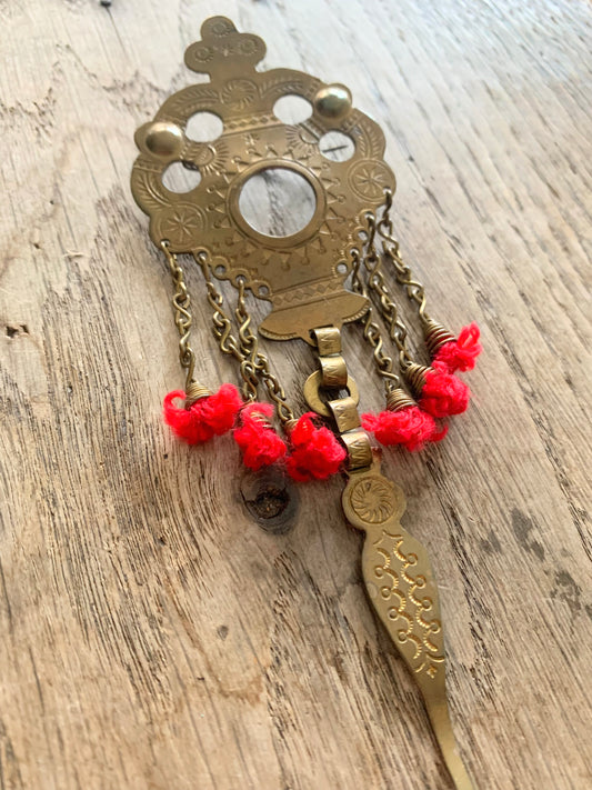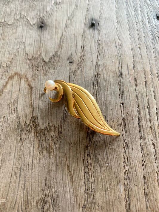Broche vintage bouquet feuillage poinçonnée métal doré
