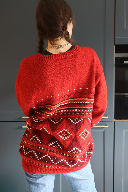 Pull over vintage rouge à broderies