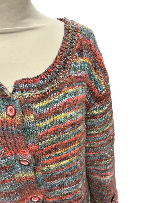 Cardigan vintage blanc rayures rouge bleu
