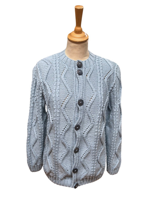 Gilet vintage fait main bleu ciel tressé