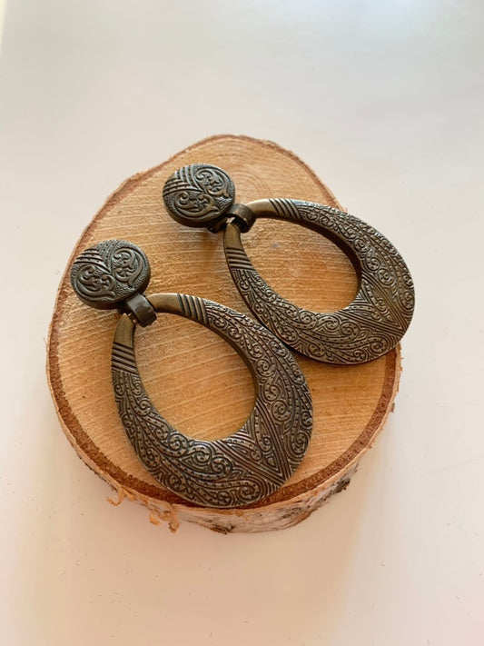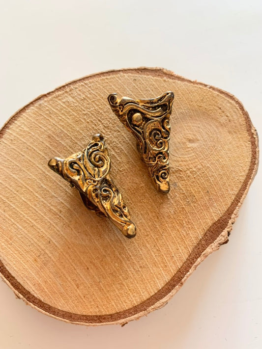 Boucles d'oreilles vintage clips triangle à motifs effet ancien