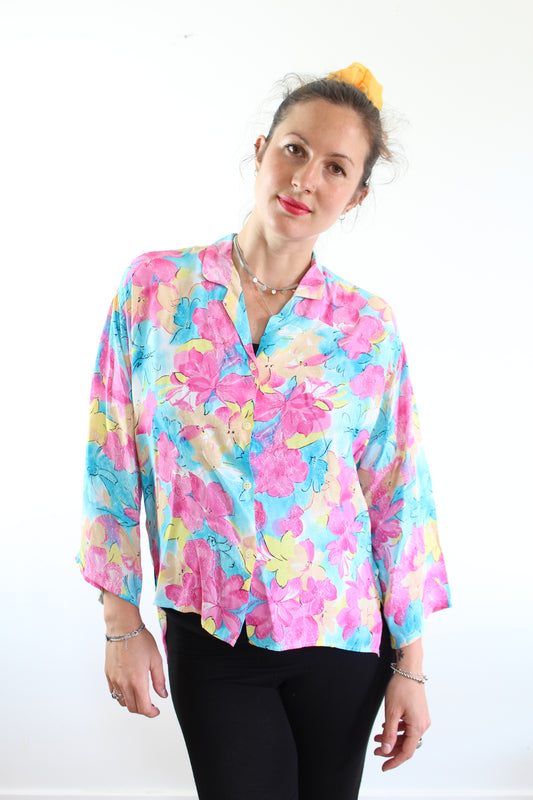 Chemisier vintage à fleurs colorées pastel La friperie vintage