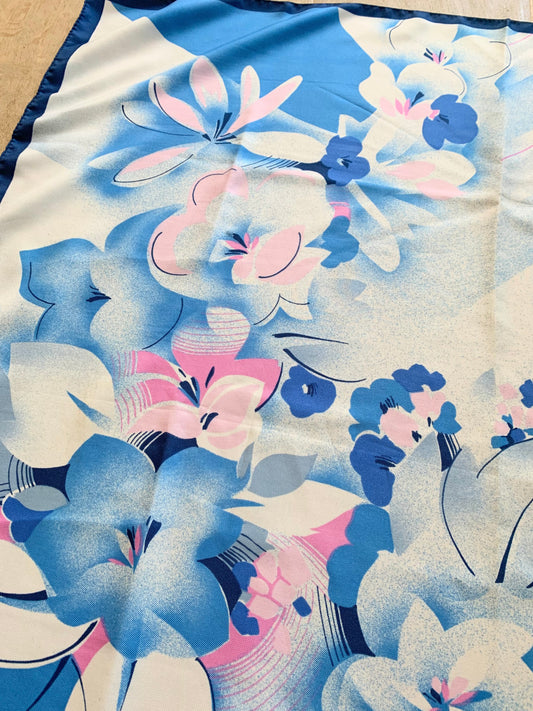 Foulard carré vintage à fleurs bleues La friperie vintage