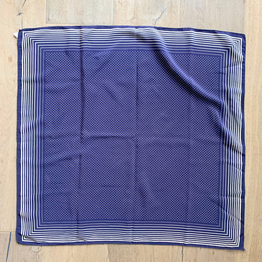 Foulard soie vintage bleu à pois blanc La friperie vintage