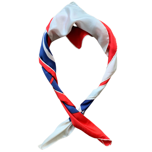 Foulard carré vintage en soie rouge et bleu La friperie vintage