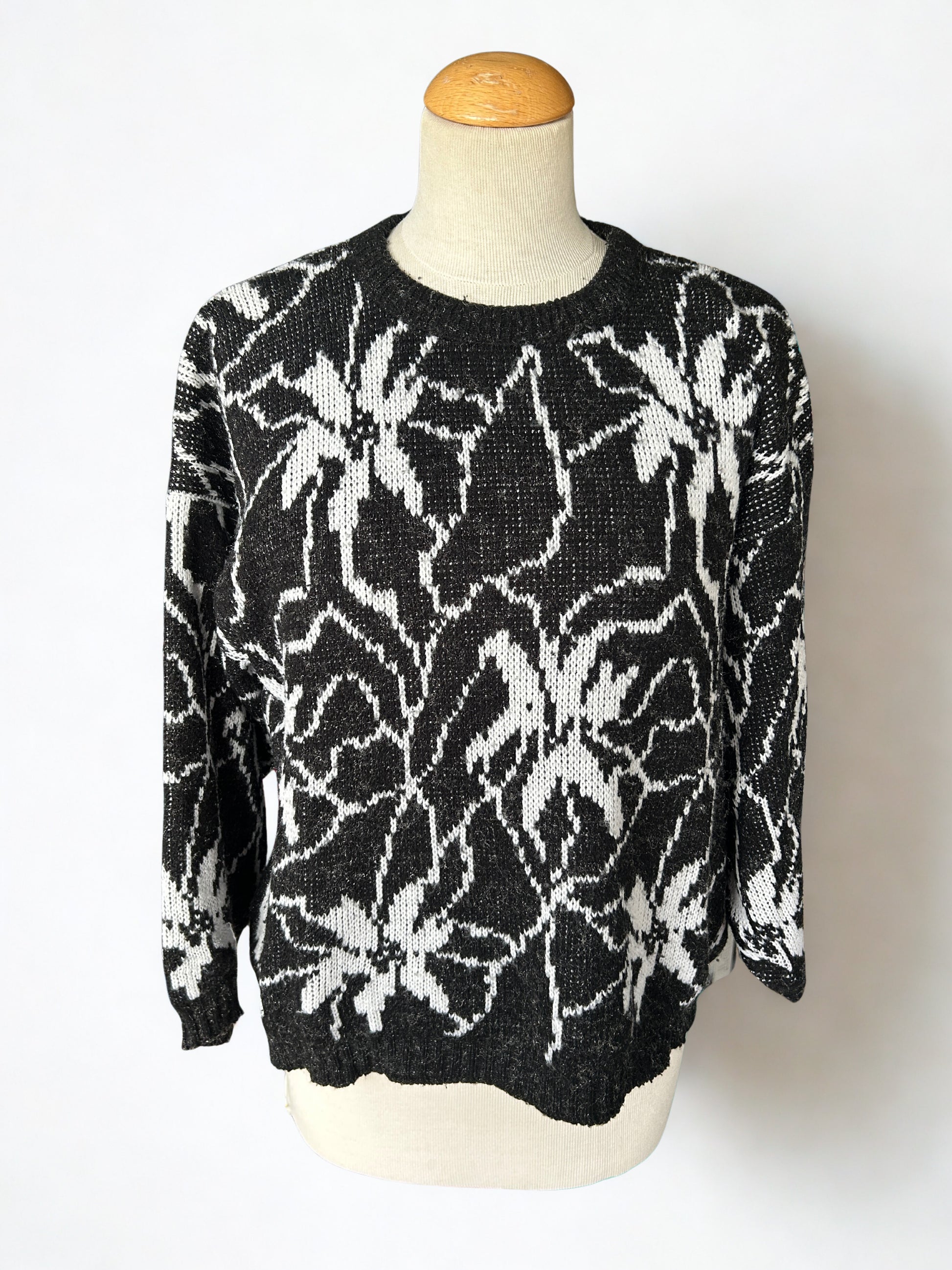 Pull vintage à motif graphique abstrait noir et blanc, au style fort et original. Coupe confortable, idéale pour un look casual, arty ou minimaliste. Maille douce et agréable à porter, parfait pour la mi-saison comme pour l’hiver.