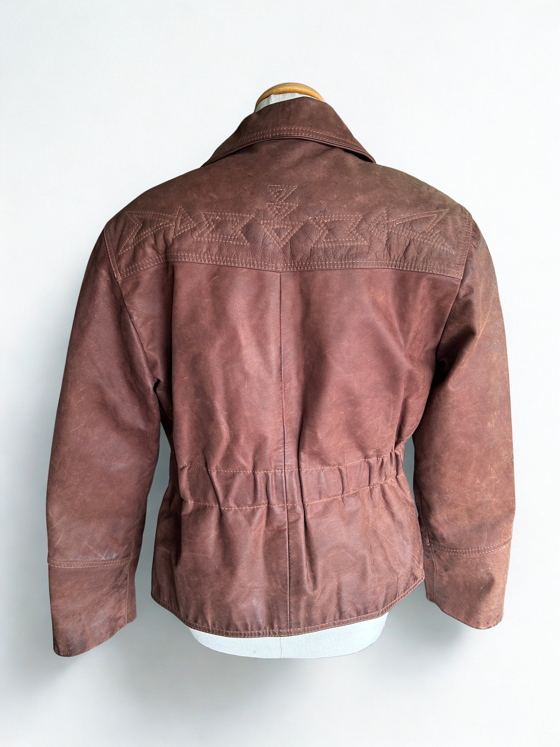 Veste en cuir nubuck vintage marron – taille L