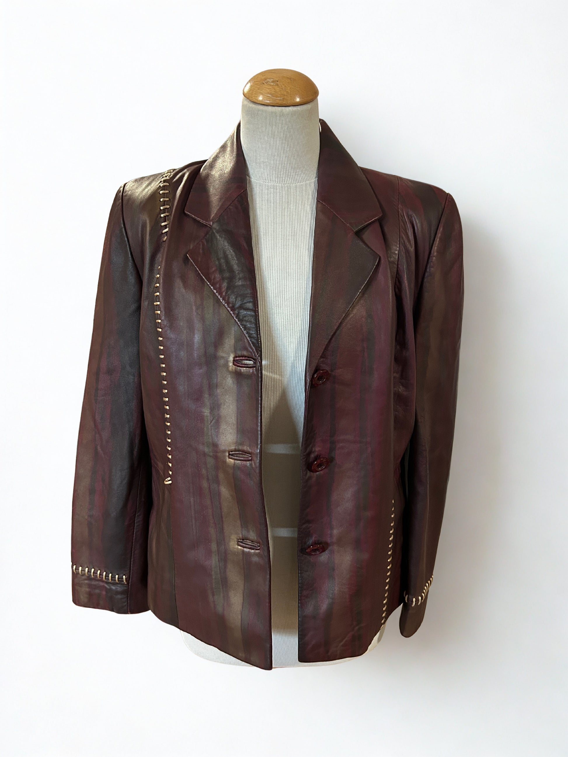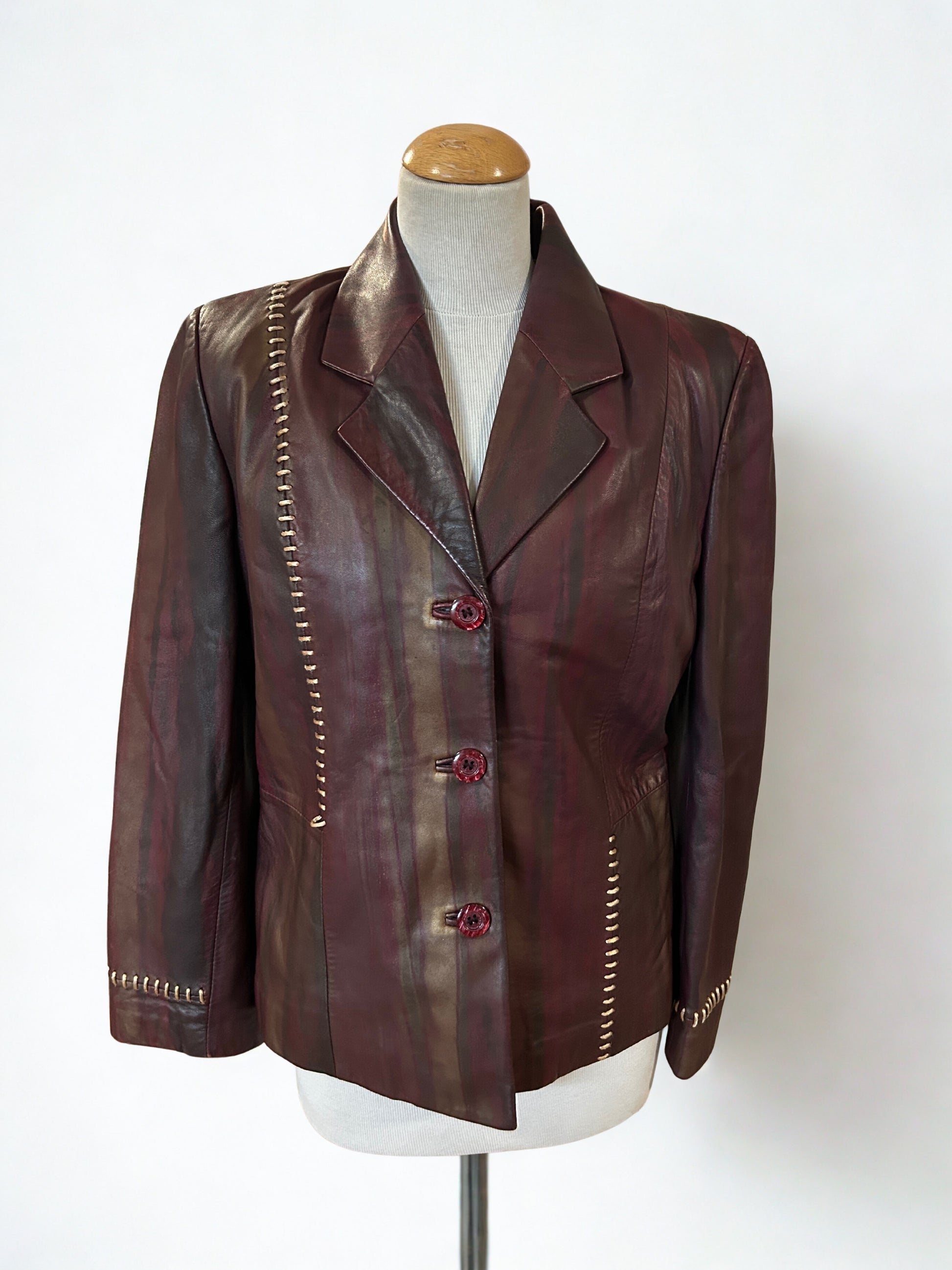 Veste en cuir vintage bordeaux à reflets